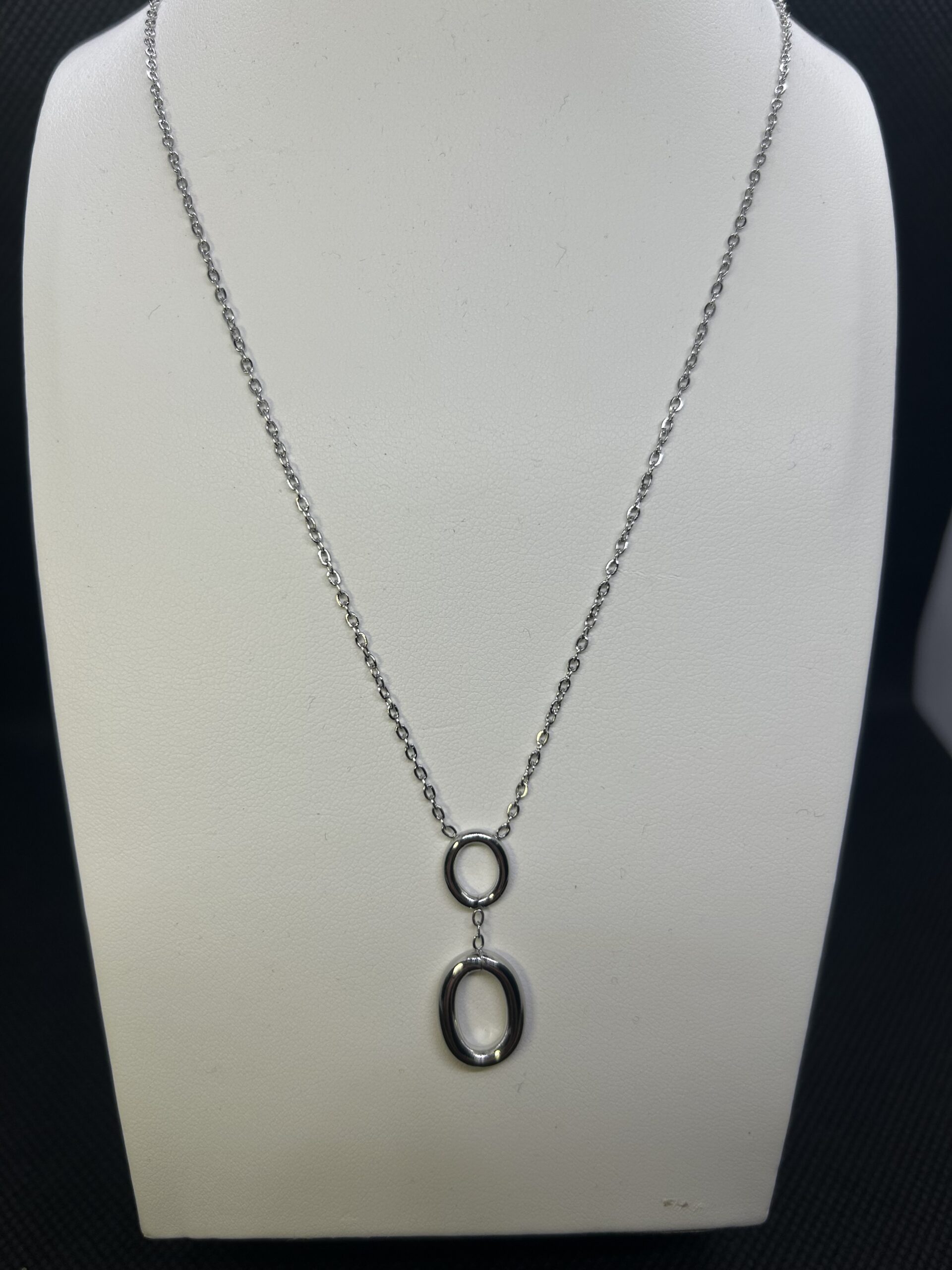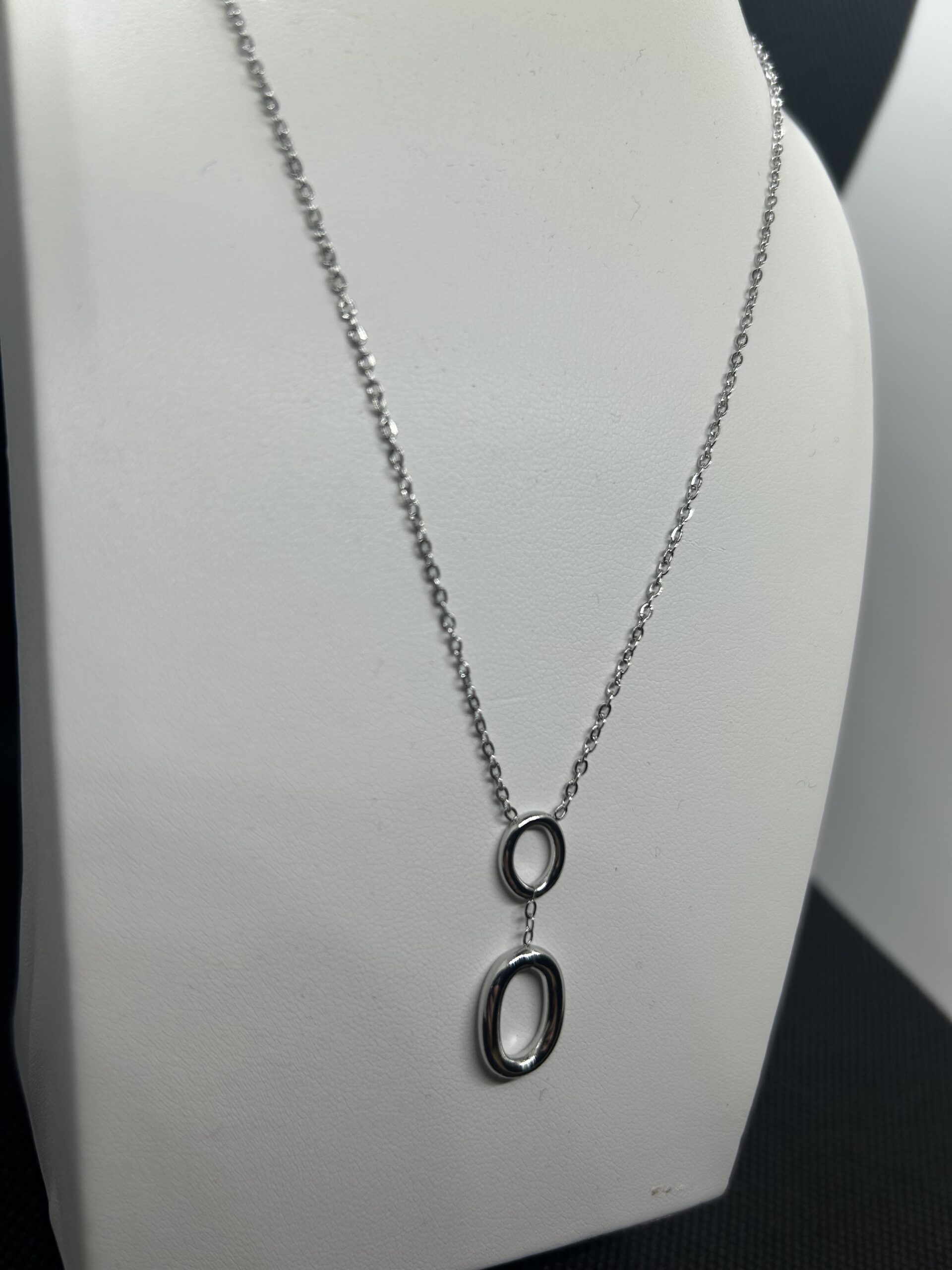 Collier chaîne argentée avec deux anneaux ovales alignés verticalement